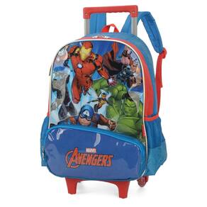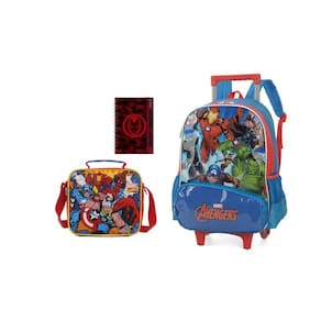 Kit escolar capitão américa mochila rodinha + lancheira mochila de rodinha e costas capitão américa disney produzido em poliéster 01 divisão grande 02 bolsos laterais de redinha 01 bolso frontal 02 alças acolchoadas de costas ziperes com puxadores personalizados estampa estilizada dimensões: 40 x 29 x 13 cm alt x larg x prof ; lancheira capitão américa disney produzido em poliéster possui alças de costas material interno térmico ziperes com puxadores personalizados estampa estilizada não acompanha potinho e garrafinha dimensões: 22 x 20 x 8cm alt x larg x prof ;