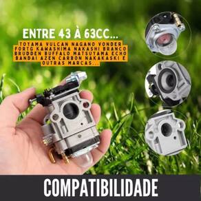 Kit carburador para roçadeira + tanque + junta + vela Modelos: 42/43/45/52/58/63/65cc Diâmetro do venture: 15 mm Compatibilidade: toyama, branco garthen, nakashi, trapp shindaiwa, kawashima, yamasaki e outras marcas. O que vai na embalagem: 1 carburador + 1 junta do carburador + tanque + vela