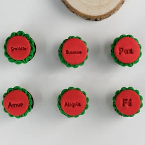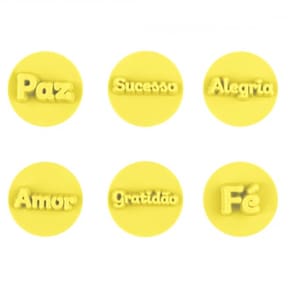 Kit carimbos desejos (2cm). São seis opções de carimbos com palavras de desejo ideias para decorações de fim de ano e datas especiais, acompanha um cabo que encaixa e facilita no momento de utilizar. Aplique de forma rápida e prática em seus doces, experimente carimbar com pó ou glitter e destaque ainda mais os desenhos. Eleve o nível de seus trabalhos, lembrancinhas, decorações e surpreenda seus clientes!