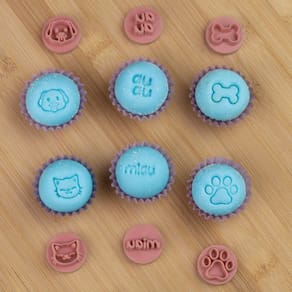 Kit carimbos pets (2cm). São seis opções de carimbos para tornar suas decorações mais divertidas, acompanha um cabo que encaixa e facilita no momento de utilizar. Aplique de forma rápida e prática em seus doces, experimente carimbar com pó ou glitter e destaque ainda mais os desenhos. Eleve o nível de seus trabalhos, lembrancinhas, decorações e surpreenda seus clientes!