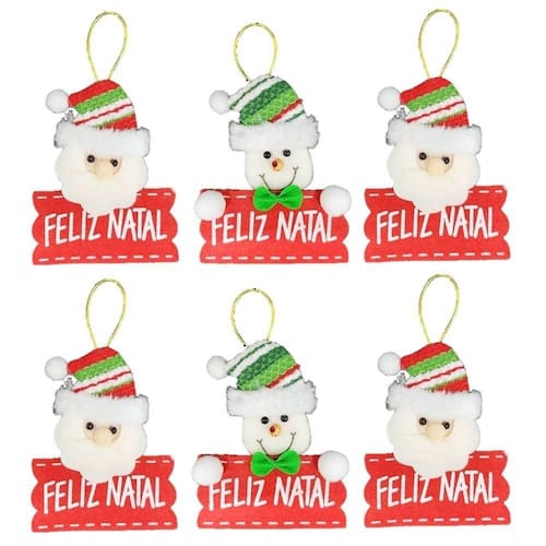 Kit Papai Noel e Boneco de Neve Feliz Natal Pelúcia 12cm 6pç