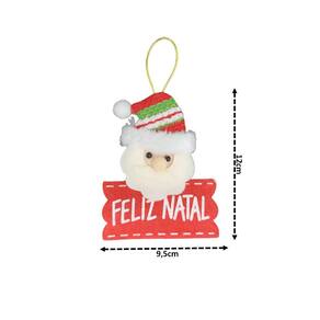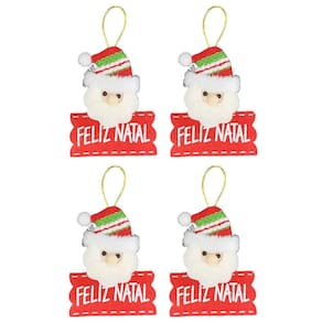 -04 unidades Carinha Papai Noel Placa Feliz Natal Pelúcia e Feltro 12cm – Master Christmas
