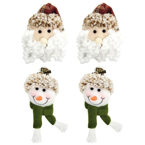 Apresentamos com alegria o nosso encantador Kit Carinha de Pelúcia com 4 unidades: 2 Papais Noéis e 2 Bonecos de Neve. Cada carinha é habilmente decorada com tricot xadrez, acrescentando um toque de estilo e aconchego ao seu ambiente natalino. Com um tamanho perfeito de 13cm, essas adoráveis peças serão o destaque da sua decoração.