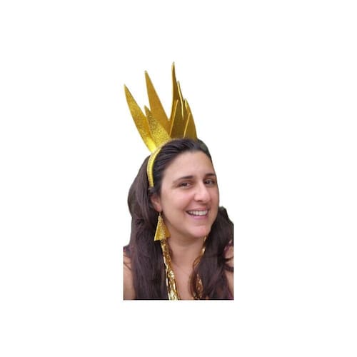 Kit Carnaval Com Tiara E Par De Brincos Longos Sol Dourado