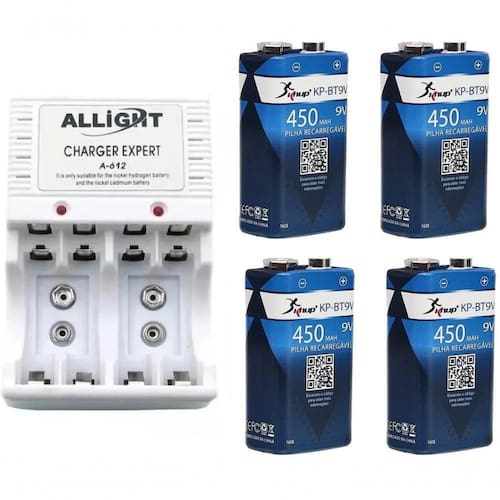 Kit Carregador de Bateria 9v + 4 Baterias Recarregaveis