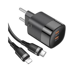 O design do carregador na cor preta reflete um estilo moderno e discreto, ideal para usuários que valorizam a estética tanto quanto a funcionalidade. Construído com polímeros de alta resistência, o corpo do adaptador é robusto e projetado para dissipar o calor de maneira eficiente, evitando o superaquecimento mesmo durante os ciclos de carga mais intensos. A interface de conexão utiliza o padrão USB-C, que é a tecnologia mais atual para transmissão de energia, garantindo uma entrega de corrente estável e fluida. O kit acompanha um cabo de dados e energia com a ponta correspondente aos smartphones que utilizam o conector específico de 8 pinos, amplamente popular no mercado de dispositivos móveis de alta performance. O cabo possui 1 metro de comprimento e é reforçado para suportar as tensões de dobras e manuseio diário, assegurando durabilidade e uma conexão firme e segura em todas as utilizações.