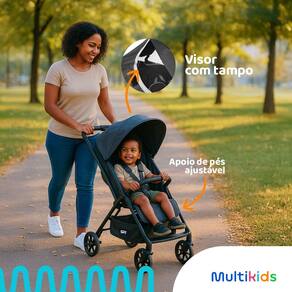 O Carrinho de Bebe Multikids Spy foi criado para transformar os passeios em momentos de conforto e diversao. Com design dobravel e supercompacto, une seguranca e praticidade para os pais, funcionando como uma verdadeira extensao do colo. E a escolha ideal para acompanhar o bebe desde o nascimento ate 15 kg.