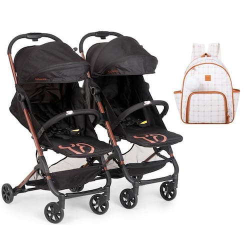 Conteúdo da embalagem: 1 carrinho de bebê para gêmeos duolee preto cobre - galzerano 1 mochila hope by flavia calina - hug