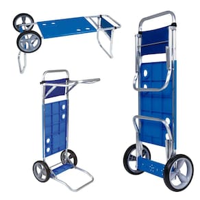 Além de carregar tudo o que precisa para curtir um dia na praia, seu carrinho se transforma em uma prática mesa com quatro encaixes para copos ou latas.