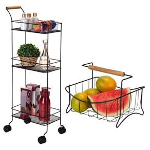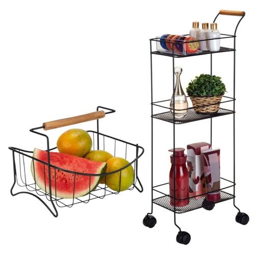 Fabricada em aço com acabamento na cor preta a Fruteira de Centro da Arthi, traz um design aramado simples e minimalista, trazendo o detalhe da alça em madeira, que permite sua integração com vários tipos de decoração de ambiente, permitindo fácil acesso a frutas ou legumes. Seja para dispor em bancada ou centro de mesa, esta fruteira dá um toque especial e organizado à sua cozinha.
