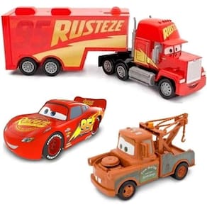 Fabricante: Toyng Tipo de Carro: Mcqueen e Mate Roda Livre, Mack á Fricção Dimensões: Mack 25cm, Relâmpago 11cm, Mate 11cm Material: Plástico Idade recomendada: Á partir e 3 anos Certificado INMETRO 002374/2020