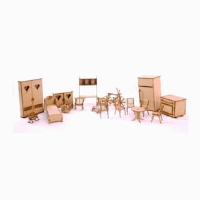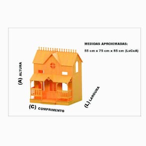 Kit casinha de bonecasbarbie modelo lian com moveis em mdf cruConfeccionada em mdf de 3 mm,a casinha de bonecas é compostapor diversas peças,as quais se encaixam sutilmente devido a precisãode cortedos mesmos. Moveis inclusos.Dimensões aprox : 55 x 75 x 85 cm largura x comprimento x altura Composição do kit : Cozinha : 4 cadeiras;mesa; fogão; geladeiraSala : 3 poltronas;mesa de centro; estanteSala do bebê : cadeirade balanço; berçoQuarto : cama;cômoda;guarda roupasVeículo : bicicletaTotal : 18 peçasNeste produto, há necessidade de colagem. O produto é montadoatravés de feixes de encaixes, e necessariamente precisa ser colado com colainstatânea tipo superbonder, ou cascorez, cola branca ou qualquer cola indicadapara mdf. Não indicamos cola quente.Material de fabricação : mdf de reflorestamento 3mm tipo pinus, cortadoatravés da tecnologia de corte a laser.- mais leve e prático de ser locomovido.- maior praticidade na montagem.- maior durabilidade.- maior precisão nos encaixes.Enviamos o produto desmontado e embalado em plástico bolha,garantindo que chegue em perfeito estado em sua residência.Comprando conosco, você também tem a garantia total doproduto. Caso haja danos durante o transporte, na montagem, ou na utilização domesmo, enviaremos sem nenhum custo adicional as peças de reposição para seuproduto.Todas as informações divulgadas são de responsabilidade dofabricante/fornecedor.Imagens meramente ilustrativas.Indicado para crianças à partir de 5 anos. Produto artesanal.Características do produtoTamanho : 55 x 75 x 85 cmEspessura do material : mdf3mm sem pinturaCompatibilidade : bonecas tipo barbieHomologação Inmetro: IP-BRI-0900/2021-16