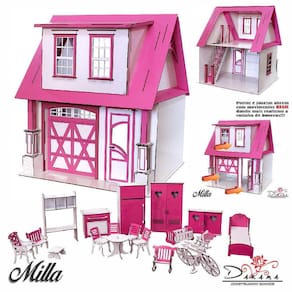 Casa de bonecas modelo milla - darama Um dos nossos lançamentos de 2022, a casa de bonecas milla, tras um conceito mais compacto para casinhas de escala para bonecas de 30 cm de altura, ideal para pequenos espaços. A casa modelo milla possui dimensão total de 60 cm de comprimentos por 56 centimetros de profundidade, e 70 centimetros de altura, comportando bonecas de até 30 cm de altura como as da linha barbie e similares. Ela é composta por 2 cômodos amplos, sendo ambos de 35 cm de altura. Possui ainda uma varanda na parte frontal com espaçamento de 10 cm, ideal para que sua boneca possa circular tranquilamente na parte interna. As janelas e portas deste modelo são móveis, ou seja, as janelas e as portinhas abrem e fecham, dando mais realismo ao produto. Todo o produto é enviado desmontado, e para sua montagem disponibilizamos um manual ilustrativo. A montagem é feita através de encaixes e colagem precisa seguir o tutorial de montagem sendo um desafio para toda a família a construção desta linda casinha. A casinha milla está sendo comercializada em diversas versões, tanto coloridas, como em mdf natural.