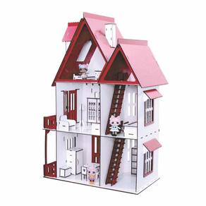 Confeccionada em mdf de 3 mm,a casinha de bonecas é compostapor diversas peças,as quais se encaixam sutilmente devido a precisão de cortedos mesmos. Acompanha móveis.