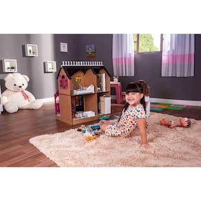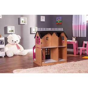 Kit casinha de bonecasbarbie modelo lian estilo eco com moveis natural Confeccionada em mdf de 3 mm,a casinha de bonecas é compostapor diversas peças,as quais se encaixam sutilmente devido a precisãode cortedos mesmos. Moveis inclusos.