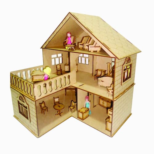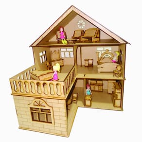 Confeccionada em mdf de 3 mm,a casinha de bonecas é compostapor diversas peças,as quais se encaixam sutilmente devido a precisão de cortedos mesmos. Acompanha móveis. Nao acompanha bonecas e carrinho