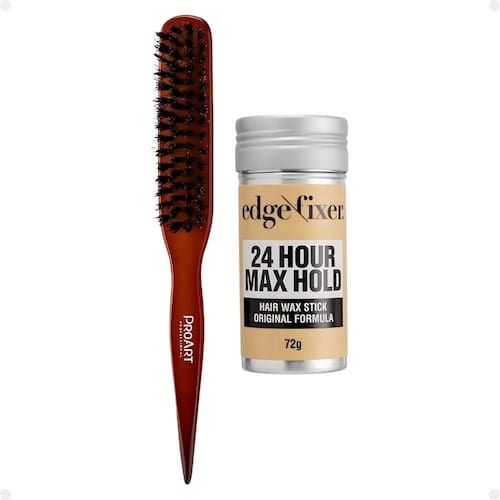 Kit Cera Fixadora de Cabelo Edge Fixer Kiss New York e Escova para Acabamento e Penteado Proart