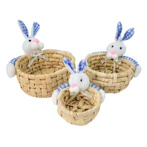 Kit Cesto Com Coelho Da Pascoa Aperitivo Mesa Posta Azul Sofisticação Rústica: Conjunto de Cestas de Fibra Natural