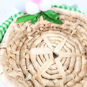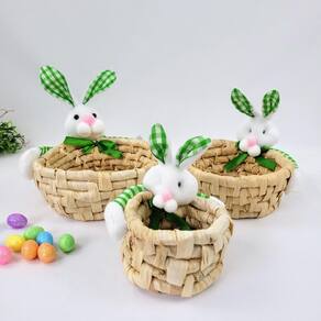 design Natural e Elegante: Cada cesta é feita de fibra natural, proporcionando um visual rústico e sofisticado. adornos Delicados: Coelhos em tecido conferem um charme único às cestas, tornando-as ideais para uma decoração temática de Páscoa. variedade de Tamanhos: Possibilita diferentes usos na mesa posta, desde servir pães e biscoitos até guardar guardanapos ou pequenos arranjos.