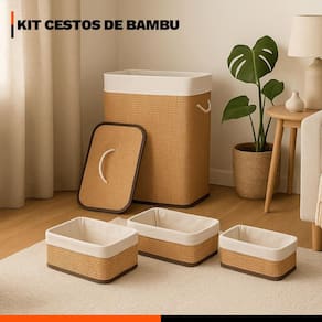 Distribuído por feheros shop kit cestos bambu premium 3 organizadores multiuso e 1 cesto de roupa suja Atenção O kit 4 cestos de bambu premium é a solução ideal para quem busca organização, sustentabilidade e sofisticação em cada ambiente da casa. Composto por 3 cestos organizadores de tamanhos variados e 1 cesto grande de roupa suja com 72 litros de capacidade, este conjunto alia funcionalidade, elegância e respeito ao meio ambiente. Produzidos em bambu natural de alta qualidade, os cestos são resistentes, ecológicos e conferem um toque rústico e moderno aos ambientes. O forro interno, presente em todas as peças, é removível e lavável, proporcionando praticidade no dia a dia. Informações do produto O kit 4 cestos de bambu premium traz praticidade, elegância e sustentabilidade para todos os ambientes. Produzidos em bambu natural de alta qualidade com estrutura reforçada, os cestos são resistentes, leves e possuem forro interno removível e lavável para facilitar a higienização. O design natural e sofisticado valoriza quartos, banheiros, lavanderias ou escritórios, promovendo organização com estilo. O conjunto permite armazenar desde roupas, toalhas e brinquedos até acessórios, produtos de higiene ou materiais de escritório, sempre com discrição e bom gosto. A tampa do cesto de roupa suja de 72 litros mantém o ambiente visualmente limpo e livre de odores, enquanto os cestos organizadores otimizam o espaço com charme. Especificações técnicas - versátil: produto que combina com qualquer estilo de decoração, ideal para quartos, banheiros, lavanderias ou escritórios - sustentável: produzido em bambu natural, uma matéria-prima ecológica, renovável e resistente à umidade - durável: estrutura reforçada com suporte interno de ferro que garante estabilidade e longa vida útil - prático: forros internos removíveis e laváveis, facilitando a limpeza e mantendo a higiene dos ambientes - leve: fácil de transportar e reorganizar de acordo com a necessidade do espaço - design sofisticado: acabamento natural e elegante que transforma os cestos em itens de decoração além de funcionais Ficha técnica dos produtos Cestos organizadores - cesto p: a 8cm x l 12cm x c 20cm - cesto m: a 10cm x l 15cm x c 23cm - cesto g: a 12cm x l 18cm x c 26cm - composição: bambu, ferro e tecido - acompanha: forro removível Cesto de roupa suja - capacidade: 72l - altura: 60cm - largura: 30cm - comprimento: 40cm - material: bambu, ferro, algodão, poliéster e viscose - acompanha: tampa e forro removível Dicas de uso e conservação - mantenha os cestos em local seco e bem ventilado - limpe a parte externa com pano seco ou levemente umedecido - lave o forro separadamente com água fria e sabão neutro - evite exposição direta ao sol ou contato prolongado com água Itens inclusos no pacote - 01 cesto p em bambu natural para organização 20cm x 12cm x 8cm - 01 cesto m em bambu natural para organização 23cm x 15cm x 10cm - 01 cesto g em bambu natural para organização 26cm x 18cm x 12cm - 01 cesto de roupa suja em bambu 72 litros com tampa e forro removível Todas as fotos são reais dos produtos. Qualquer dúvida estamos à disposição. Dúvidas frequentes 01 - os produtos são novos Possuem Sim. Todos os produtos são novos e possuem de 3 meses contra defeitos de fabricação. 02 - os cestos são resistentes à umidade Sim. O bambu é naturalmente resistente à umidade, mas não deve ser exposto continuamente à água. 04 - como posso acompanhar a entrega