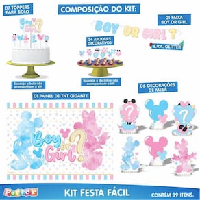 Kit chá revelação 39 itens painel + enfeites + faixa Kit festa fácil para chá revelação em eva - produto original