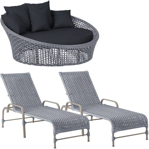 Kit Chaise Hungria e Espreguiçadeiras Catar Corda Náutica Alumínio Trama - Prata