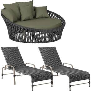 Kit Chaise Hungria E Espreguiçadeiras Catar Trama Preto