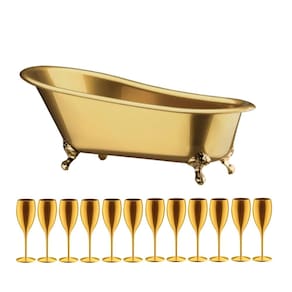 Eleve o glamour das suas celebrações com a nossa Champanheira tipo Banheira King! Com capacidade para até 12 garrafas, esta peça deslumbrante é o complemento perfeito para qualquer festa ou evento especial. Fabricada pela renomada marca Boccati, esta champanheira é feita de plástico de alta qualidade e apresenta um acabamento dourado luxuoso que certamente impressionará seus convidados. Mantenha suas bebidas geladas e sua festa brilhante com esta elegante champanheira. Adquira este kit agora e transforme seus momentos especiais em verdadeiras experiências de luxo.