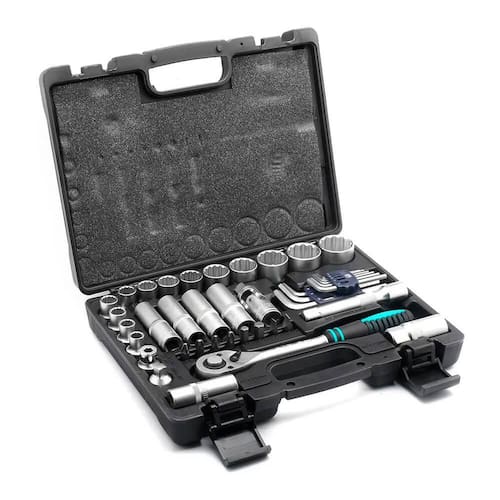 O kit de chaves e cachimbos 135799 da stels, é composto por 41 peças de excelente qualidade em aço cromo vanádio, soquetes estriados de até 32mm, extensão, chave catraca, cabo t, todos com encaixe de 1/2, além de chaves allen e bits.