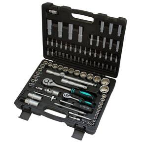 O kit de Chaves e Cachimbos 1358099 da Stels, é composto por 94 peças de excelente qualidade em aço cromo vanádio, soquetes estriados de até 32mm, extensão, chave catraca, cabo T, encaixes de 1/4 e 1/2, além de chaves allen e bits, e muito mais. Completissimo.