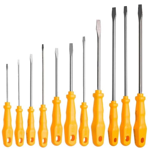 Sua ponta chata é ideal para uma ampla variedade de aplicações, oferecendo precisão e firmeza em cada movimento. As hastes das chaves de fenda são submetidas a rigorosos testes em máquinas especializadas, garantindo um equilíbrio perfeito entre resistência mecânica e dureza, essenciais para um desempenho confiável.