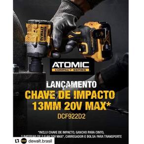 Kit chave de impacto sem fio atomic 20v max 1/2 pol. Com pino de retenção, 2 baterias 2ah, 01 carregador bivolt e maleta nylon