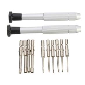 As ponteiras, feitas em aço de alta velocidade, são ideais para diferentes tipos de parafusos. O kit inclui ponteiras hexagonais nos tamanhos 2.0, 2.3, 2.5 e TN8, chaves de fenda Phillips nos tamanhos 1.5, 1.7 e 2.0, e chaves de fenda nos tamanhos 1.5, 1.7 e 2.0.