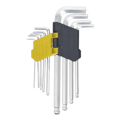 Kit Chaves Hexagonais com Ponta Esférica - 9 Peças O Kit de Chaves Hexagonais é o aliado ideal para quem busca eficiência e praticidade em tarefas mecânicas e de manutenção. Composto por 9 peças de tamanhos variados 1,5 mm a 10 mm , esse conjunto oferece versatilidade e precisão para apertar ou soltar parafusos com encaixe sextavado. Com design em L e extremidade esférica tipo bola , facilita o acesso em ângulos difíceis e áreas estreitas, garantindo maior comodidade durante o uso. Produzido em aço forjado de alta resistência e dureza HRC 50, proporciona durabilidade e desempenho superior. Conteúdo: 9 chaves Allen com ponta esférica Embalagem: Blister com suporte organizador Medidas: 1,5 / 2 / 2,5 / 3 / 4 / 5 / 6 / 8 / 10 mm Material: Aço forjado Dureza: HRC 50 - Ideal para manutenção de bicicletas, automóveis, montagem de móveis e . - Manter fora do alcance de crianças. - Utilizar com equipamentos de proteção óculos em ambiente de trabalho. Ferramenta prática, segura e resistente. Perfeita para ter sempre à mão Marca: Não Informado