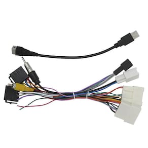 - chicote de ligação do som e adaptador antena toyota com plug para interface de volante e chicote para alto-falante com usb + rca para câmera verificar voltagem da câmera pois pode ser necessário alterar de 12volts para 6volts