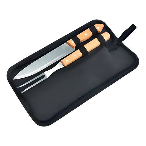 Kit Churrasco 2 Peças Garfo Faca Aço Inox Cabo Madeira O segredo de um churrasco perfeito começa com as ferramentas certas Este conjunto é a combinação ideal de elegância, precisão e durabilidade para elevar o nível do seu churrasco. -design sofisticado: Perfeito para impressionar nos churrascos -O garfo trinchante, também em inox, oferece a firmeza necessária para segurar e servir a carne com total segurança e estilo. -o charme rústico e sofisticado fica por conta dos cabos em madeira natural. Especificações Técnicas: - Material: Aço Inox/Madeira - Faca: 31,7cm COMPRIMENTO x 11,3cm LARGURA - Garfo: 32,7cm COMPRIMENTO x 2,6cm LARGURA - Cor: Prateado Itens Inclusos: - 01x Garfo - 01x Faca