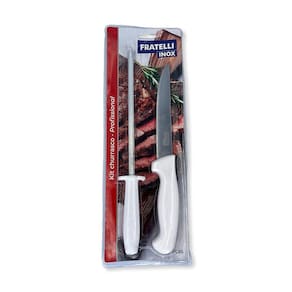 Contém: - Faca: 30 cm - Chaira: 31 cm Material: Aço Inox e Plástico