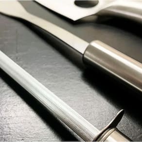 faca, garfo e chaira foi projetada em aço inox para