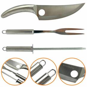 Kit Churrasco 3 Peças em Aço Inox