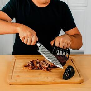 Kit Churrasco 3 Peças Faca Garra Amolador Preto Aço Inox Kit Churrasco 3 Peças Faca Garra Amolador Preto Aço Inox - Precisão, resistência e praticidade em um único conjunto. Ideal para quem busca desempenho e durabilidade na preparação de carnes, este kit foi desenvolvido para atender desde o churrasqueiro experiente até quem deseja aprimorar suas habilidades na grelha, combinando eficiência, design moderno e confiabilidade. Composto por uma faca robusta com lâmina de aço inoxidável, o corte é preciso e sem esforço, garantindo que cada pedaço de carne seja tratado com a atenção que merece. A lâmina de 33,5 cm de comprimento e 4,5 cm de largura oferece o equilíbrio perfeito entre força e leveza, proporcionando agilidade no manuseio e cortes impecáveis, seja para carnes cruas ou assadas. A garra de urso é a aliada ideal para segurar peças grandes com firmeza, desfiar carnes cozidas ou manipular alimentos quentes diretamente na grelha. Com dimensões de 11 cm de largura por 10,6 cm de comprimento e estrutura em PP resistente, ela garante segurança e estabilidade durante o uso, evitando acidentes e aumentando sua produtividade. Para manter a performance da faca sempre no mais alto nível, o kit inclui um amolador prático e eficiente. Com 5 cm de altura, 5 cm de largura e 10 cm de comprimento, é compacto, fácil de armazenar e rápido de usar, assegurando que o fio da lâmina esteja sempre afiado para cortes precisos e uniformes. O aço inox presente nas peças garante resistência à oxidação e facilidade de limpeza, prolongando a vida útil do produto. O design moderno na cor preta confere um visual elegante e versátil, combinando com qualquer área de churrasco ou cozinha, transmitindo uma imagem e sofisticada. Além disso, este conjunto é um presente funcional e de alta qualidade, perfeito para surpreender apreciadores de churrasco e gastronomia. Especificações Técnicas: - Modelo: Kit para Churrasco 3 Peças - Material: PP / Aço Inox - Dimensões da Faca: 33,5 cm comprimento x 4,5 cm largura - Dimensões da Garra: 11 cm largura x 10,6 cm comprimento - Dimensões do Amolador: 5 cm altura x 5 cm largura x 10 cm comprimento - Cor: Preto Itens Inclusos: - 01 Faca - 01 Garra - 01 Amolador : Este produto possui de 3 meses contra defeitos de fabricação, assegurando que você receba um kit churrasco confiável e de alta qualidade. Em caso de necessidade, o atendimento é realizado de forma ágil e segura, reforçando nosso compromisso com a satisfação do cliente. Invista no Kit Churrasco 3 Peças Faca Garra Amolador Preto Aço Inox e leve mais eficiência, estilo e confiança para seus momentos de preparo. Uma escolha inteligente para quem valoriza qualidade, funcionalidade e durabilidade em cada detalhe.