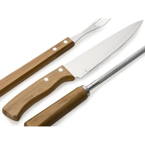 Kit Churrasco com 3 peças, com ela você estará preparado para o seu churrasco. Prepare e corte suas carnes com muito mais qualidade, com as ferramentas que um bom churrasqueiro precisa.