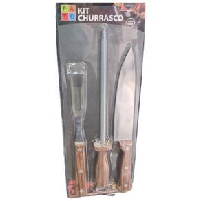 São 3 peças de aço inox neste kit churrasco. auxiliará muito no seu churrasco.