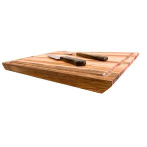 Material: A tábua é fabricada em madeira de alta qualidade, oferecendo durabilidade e uma superfície de corte ideal para carnes. O garfo e a faca são feitos de aço inoxidável, garantindo resistência à corrosão e facilidade na manutenção da lâmina.