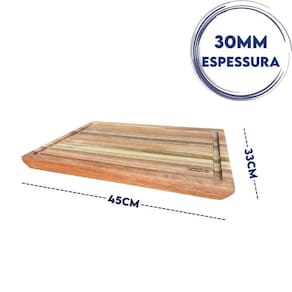 Tábua de Madeira: Com dimensões de 45 cm (comprimento) x 33 cm (largura) x 3 cm (espessura), a tábua é feita de madeira robusta e resistente, perfeita para cortar e preparar carnes. Sua superfície espaçosa proporciona bastante área para o manuseio dos alimentos. Garfo Trinchante: O garfo trinchante é essencial para manusear e servir carnes de forma eficiente. Seu design ergonômico e lâminas afiadas facilitam a pegada e o corte preciso das carnes. Faca de Churrasco: A faca inclui uma lâmina afiada e resistente, ideal para cortar carnes com facilidade e precisão. O cabo é projetado para um agarre confortável e durante o uso.