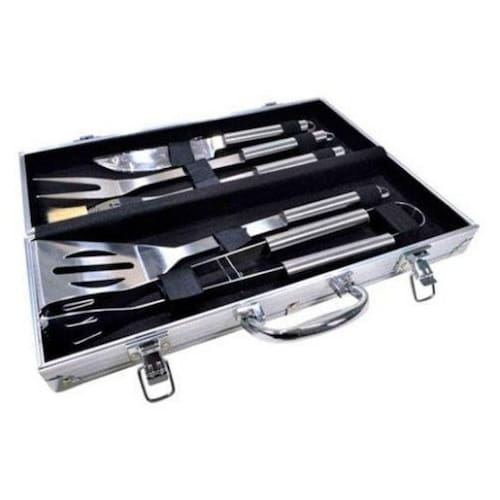 Kit Churrasco 5 Peças Inox Maleta Alumínio ChurrasqueiraKit Churrasco 5 peças em Aço Inox com Maleta em Alumínio. Faça um churrasco espetacular com nosso Kit para Churrasqueiro.Prepare seu churrasco com muito mais praticidade, estilo e profissionalismo com esse Kit para Churrasco com 5 Peças em Aço Inox.O Kit acompanha uma Maleta em Alumínio com forro interno em tecido para o armazenamento ideal e cuidadoso das suas peças.Além disso, a Maleta facilita a locomoção das peças, pois é leve e possui presilhas que mantém os itens imóveis dentro dela.Ao total, são 5 peças produzidas em Aço Inox, material resistente e duradouro, com formato que facilita o manuseio e evitam ações derrapantes.Com este Kit é possível ter todo o material necessário para fazer o seu churrasco onde você quiser, além de ser um ótimo item para presentear quanto para uso próprio. Use o que á de melhor para fazer churrasco.Conteúdo da Embalagem:1 Faca1 Garfo1 Pegador1 Pincel1 Espátula1 Maleta em AlumínioDimensões da Faca:Comprimento: 27 cmLargura (Da Lâmina): 3 cmLargura do Cabo: 2 cmDimensões do Garfo:Comprimento: 34 cmLargura (Do topo do Garfo): 3,5 cmLargura do Cabo: 2 cmDimensões do Pegador:Comprimento: 34 cmLargura (Do topo do Pegador): 4 cmLargura do Cabo: 2 cmDimensões do Pincel:Comprimento: 33 cmLargura (Do topo do Pincel): 3,5 cmLargura do Cabo: 2 cm Dimensões da Espátula:Comprimento: 35 cmLargura (Do topo da Espátula): 7,5 cmLargura do Cabo: 2 cmDimensões da Maleta (Fechada):Altura: 13 cmLargura: 7 cmComprimento: 37 cmDimensões da Maleta (Aberta):Altura: 3,5 cmLargura: 27 cmComprimento: 37 cm 3 Meses de Garantia Contra Defeito de Fabricação1167KG Mod: CA12220