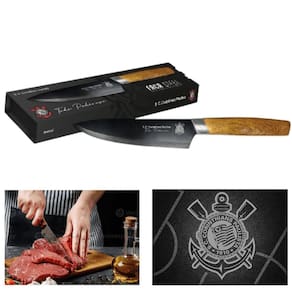 Corte preciso e durabilidade: Lâmina em aço inox de alta qualidade que garante um corte preciso e eficiente, além de ser resistente à corrosão e ao desgaste. Cabo de madeira confortável e elegante: Cabo em madeira com design ergonômico que proporciona conforto e segurança no manuseio, além de um toque rústico e elegante. Personalização exclusiva: Logo do Corinthians gravado a laser na lâmina, um detalhe que faz toda a diferença e demonstra sua paixão pelo time.