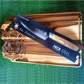 Kit Churrasco Corinthinas Tabua +Faca de Carne Oficial Presente Kit Corinthians: Faca de Aço Inox com Cabo de Madeira e Logo Gravado a Laser + Tabua de churrasco corinthians.