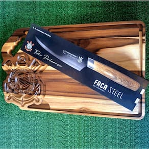 Kit Churrasco Corinthinas Tabua +Faca de Carne Oficial Presente Kit Corinthians: Faca de Aço Inox com Cabo de Madeira e Logo Gravado a Laser + Tabua de churrasco corinthians.
