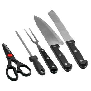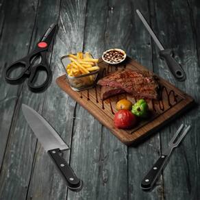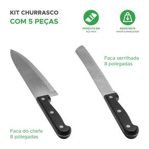 Este conjunto de 5 peças é voltado para as tarefas essenciais de preparação, corte e cozimento de carne em um churrasco tradicional. Inclui: - tesoura para churrasco: utilizada para cortar pedaços menores de carne, como frango ou . Ela possui lâminas afiadas e resistentes que facilitam o corte preciso. - amolador de facas: ferramenta importante para manter as facas do conjunto afiadas. Facas afiadas são essenciais para um corte preciso e seguro da carne. - 2 facas para churrasco: são projetadas com lâminas largas e resistentes, ideais para cortar e fatiar carnes grelhadas com facilidade. Têm um fio serrilhado que ajuda a cortar através das fibras da carne. - garfo para churrasco: utilizado para segurar e virar a carne na grelha. Ele é projetado para lidar com pedaços maiores de carne e garantir que eles cozinhem de maneira uniforme. Especificações técnicas: Jogo de churrasco tradicional 5 peças Marca: Não Informado Ean: 7899744088091