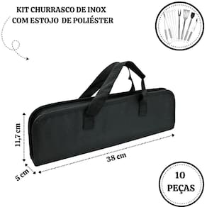 KIT CHURRASCO DE INOX NO ESTOJO COM 10PÇS 38CM - 5241